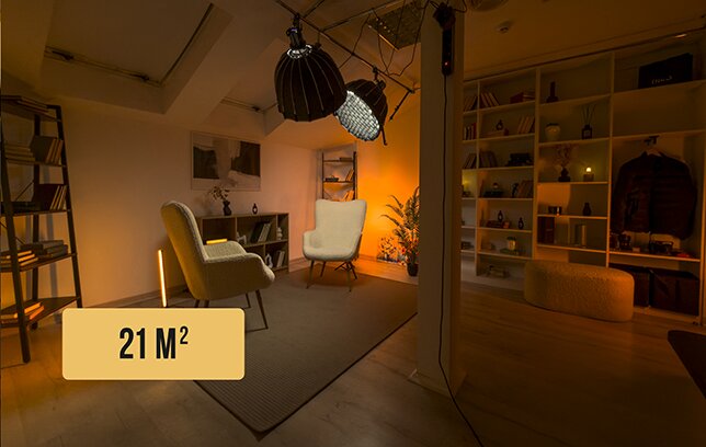 - Завдяки кольоровому світлу створюються стильні кольорові градієнти на фоні.